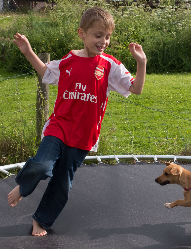 The last few springs on the trampoline took quite a bit of fitting. but when it was finished the children loved it, and what surprised me was that Poppy loved it too. She jumped up and seemed quite at home following the children as they bounced around.