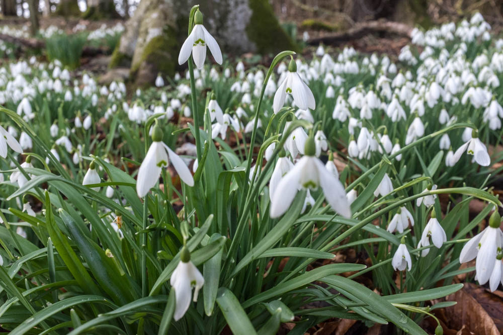 We all enjoyed our walk today, not least because the snowdrops are in full bloom. It seems that there are snowdrops everywhere just now, at the road sides, on the banks down to the field in Hatton, and of course among the trees in so many different places in the countryside. Our single snowdrop under our hydrangea bush in our garden looks a little pathetic, though!
