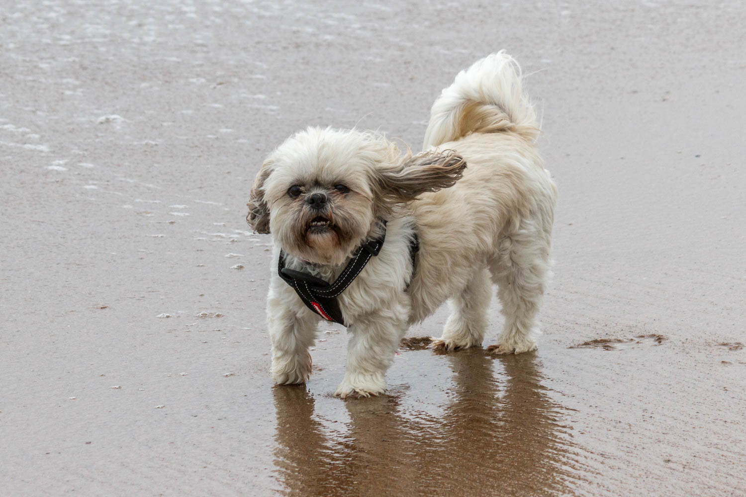 Today we had this stretch of the beach to ourselves and Poppy enjoyed a run at full speed, chasing birds like the rook which took off with a squawk of complaint. Lily’s complaint of course was at the waves. She used to be afraid of the water, but now she delights in barking at the waves, a touch of a doggy King Canute, perhaps?