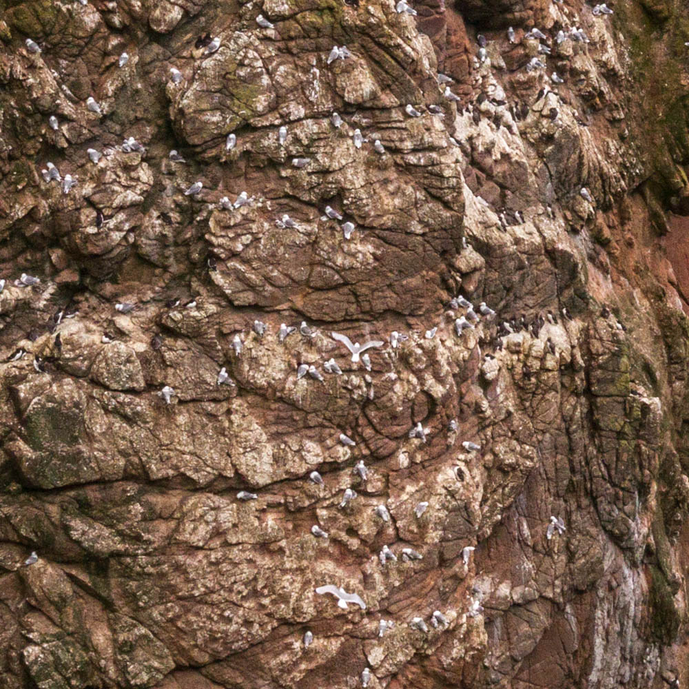You use all your senses on a visit to the sea cliffs round the Bullers of Buchan. You can certainly hear the calling of the gulls and the other sea birds as well as see them swirling or perching on the ledges. You can certainly smell the guano. You need your balance on the narrow paths, and use your touch to grab onto the rocks. Perhaps you don’t use your sense of taste, but let’s pass over that one.