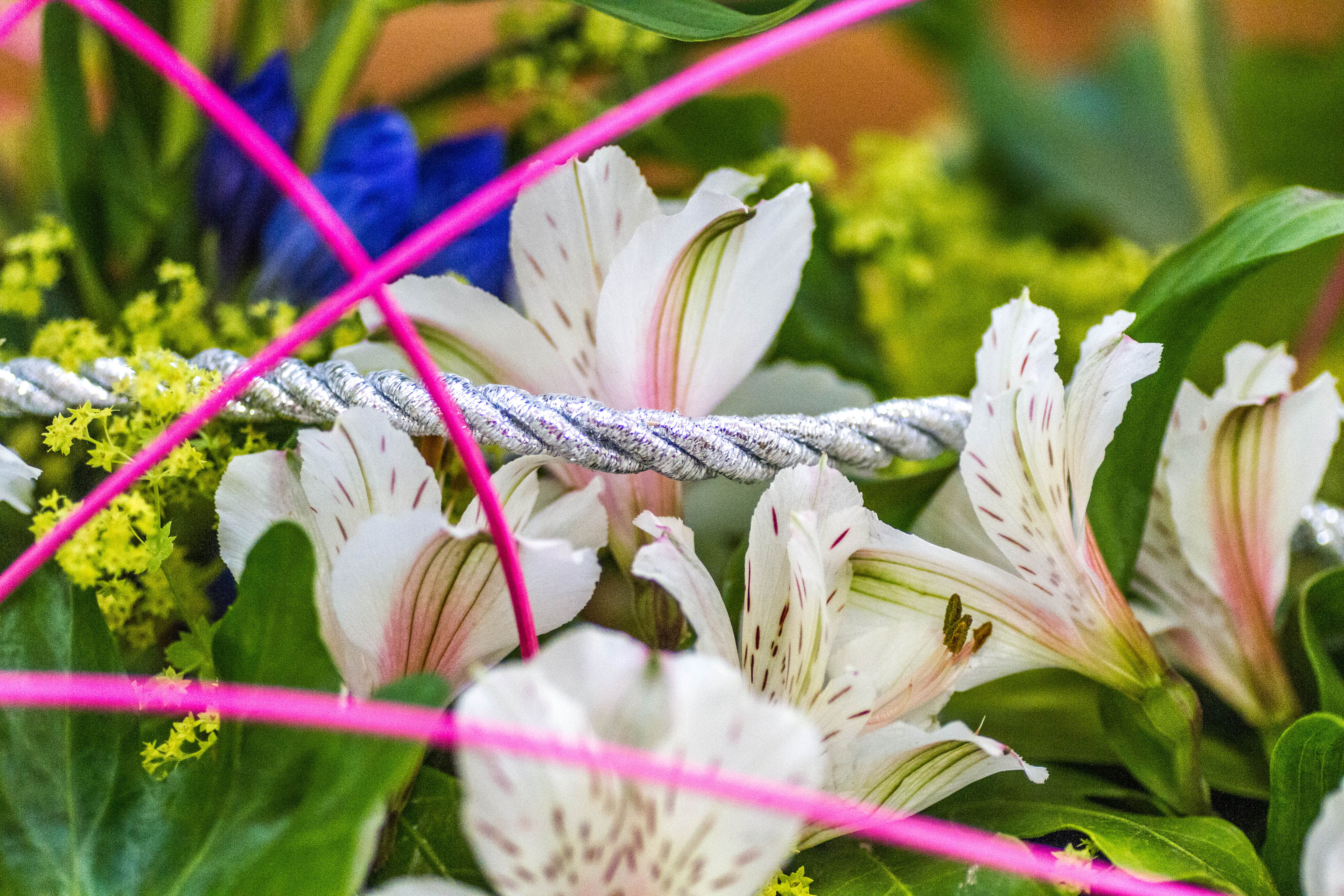 I spent a busy hour or so taking pictures of the wonderful floral displays on view at Peterhead New Parish Church’s Flower Festival during Peterhead Scottish Week this year. All the displays were inspired by the titles of hymns, and the creators had taken very different approaches to their work, from the cakes, sweets and chocolate (Yield not to Temptation) to a trumpet, old Salvation Army Bonnet and Bible (Onward Christian Soldiers).