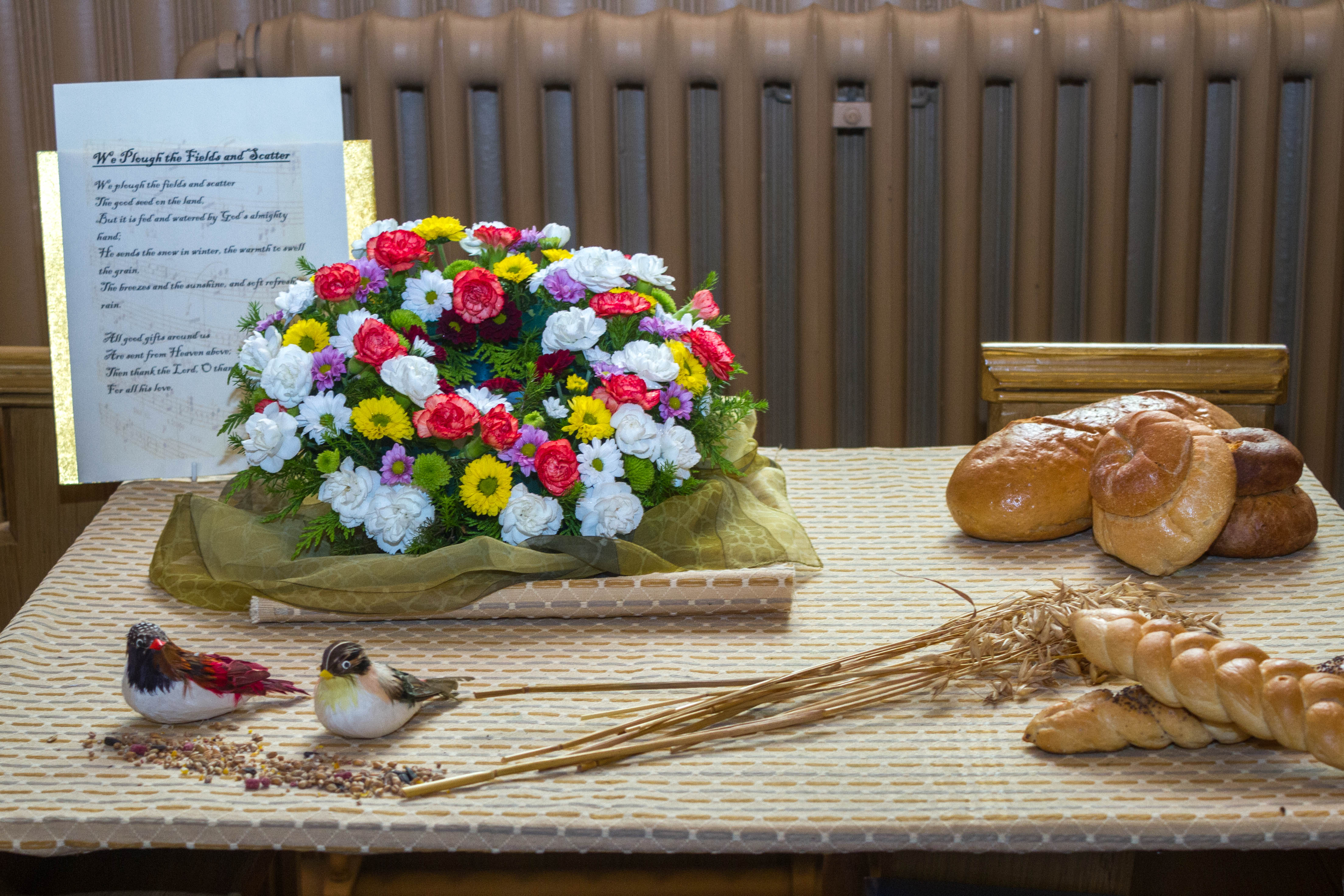 It was the few stalks of oats that drew my eye among the bread, birds and seeds on display in We plough the fields and scatter the good seed on the land.