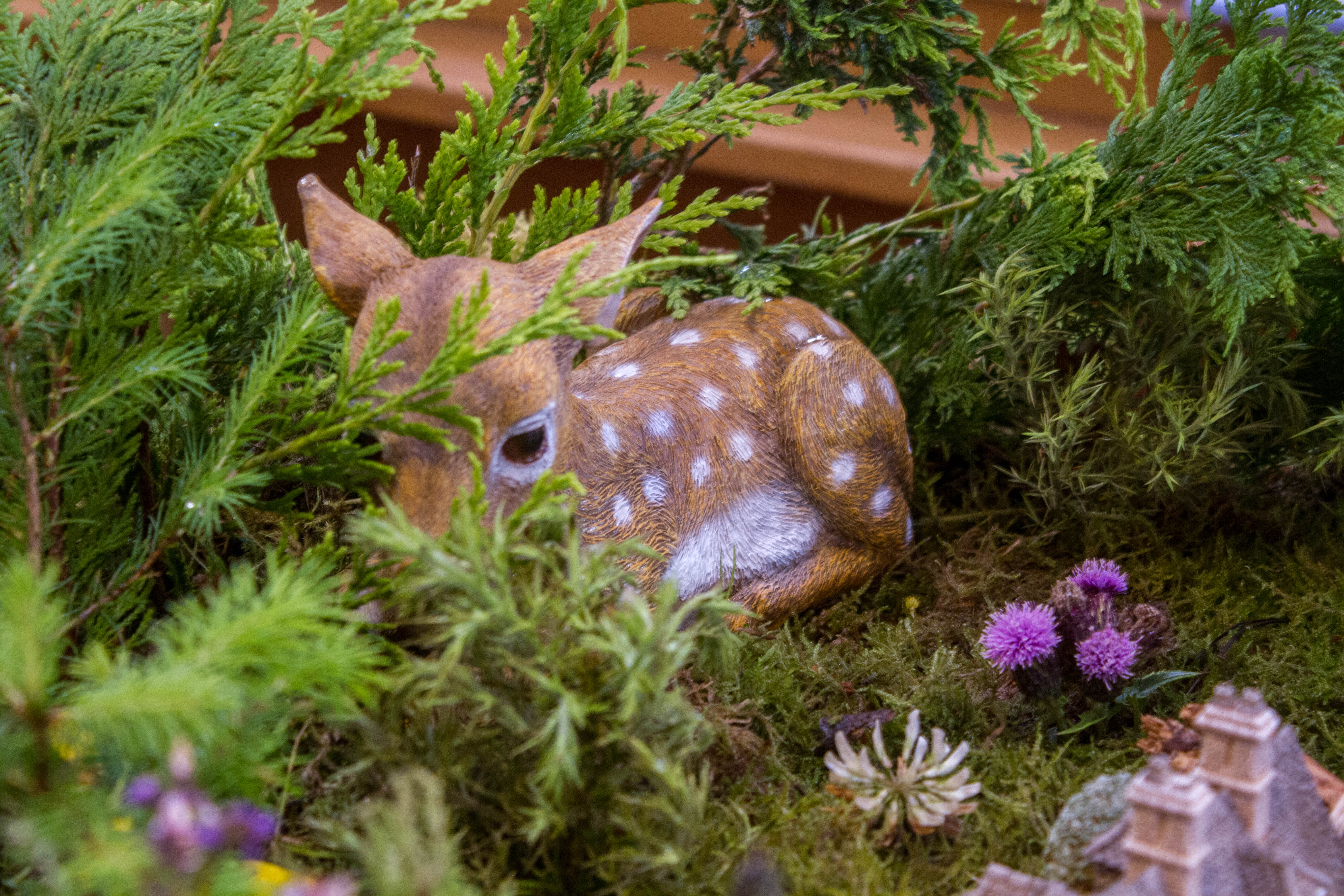 To illustrate As the deer pants for the water, an elaborate garden was created using wild flowers, with just so much to look at. What drew my eye was the little deer.