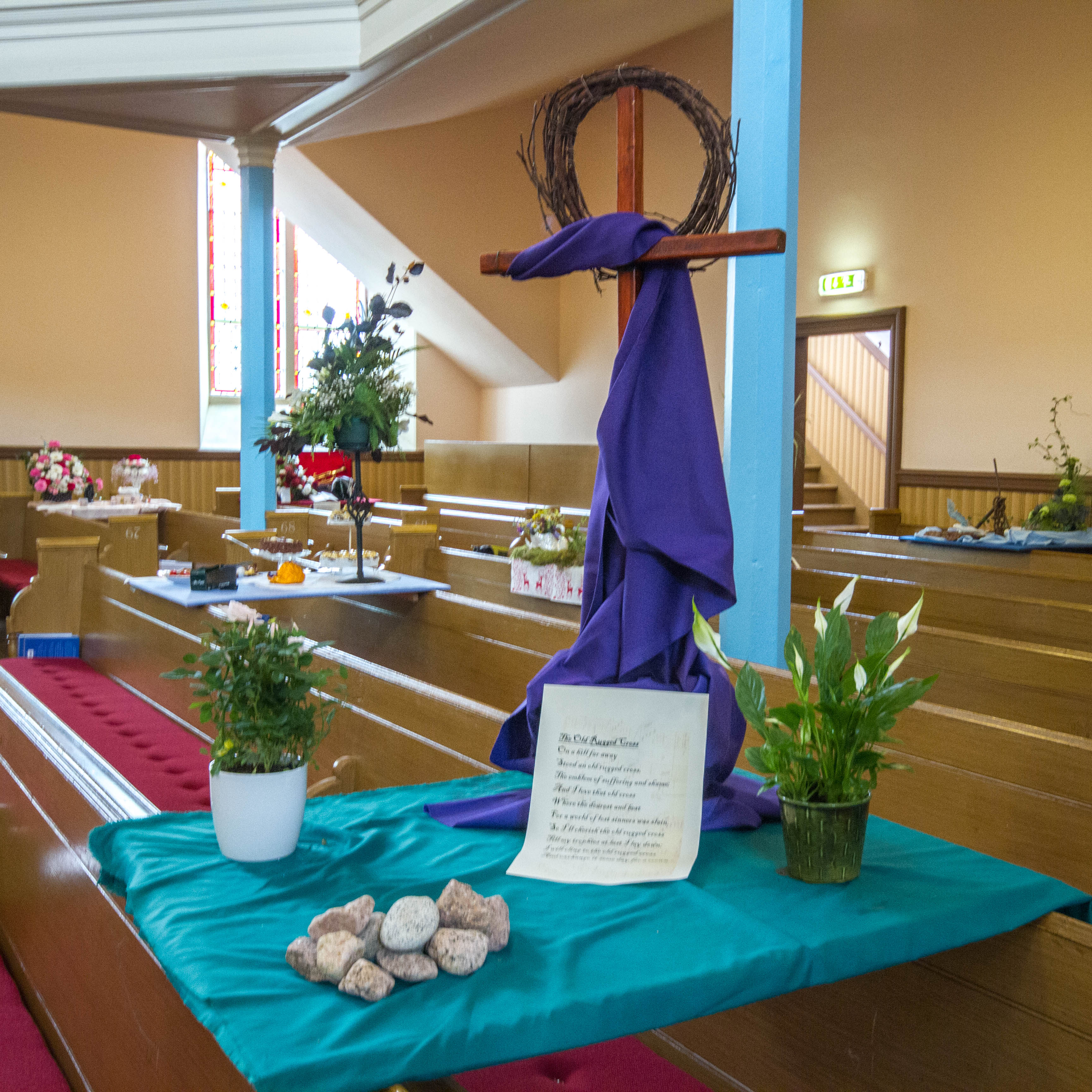 On the communion table was a large display inspired by the Hymn, Bind us together.