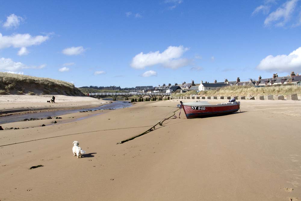 A place where I love to take pictures is between the Ladies’ Bridge and Port Erroll Harbour. There are so many wonderful views there of the burn, the sand, the seaweed covered rocks, that picturesque boat, not to mention the Ladies’ Bridge itself. And Lily enjoys time on the beach too.